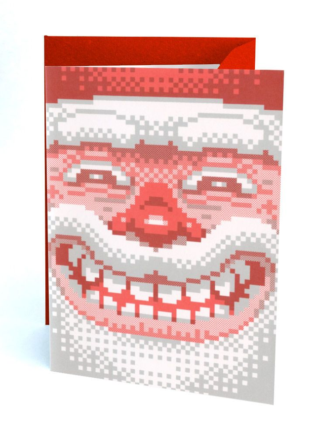 A silkscreen printed greetings card, bagged with red paper envelope.